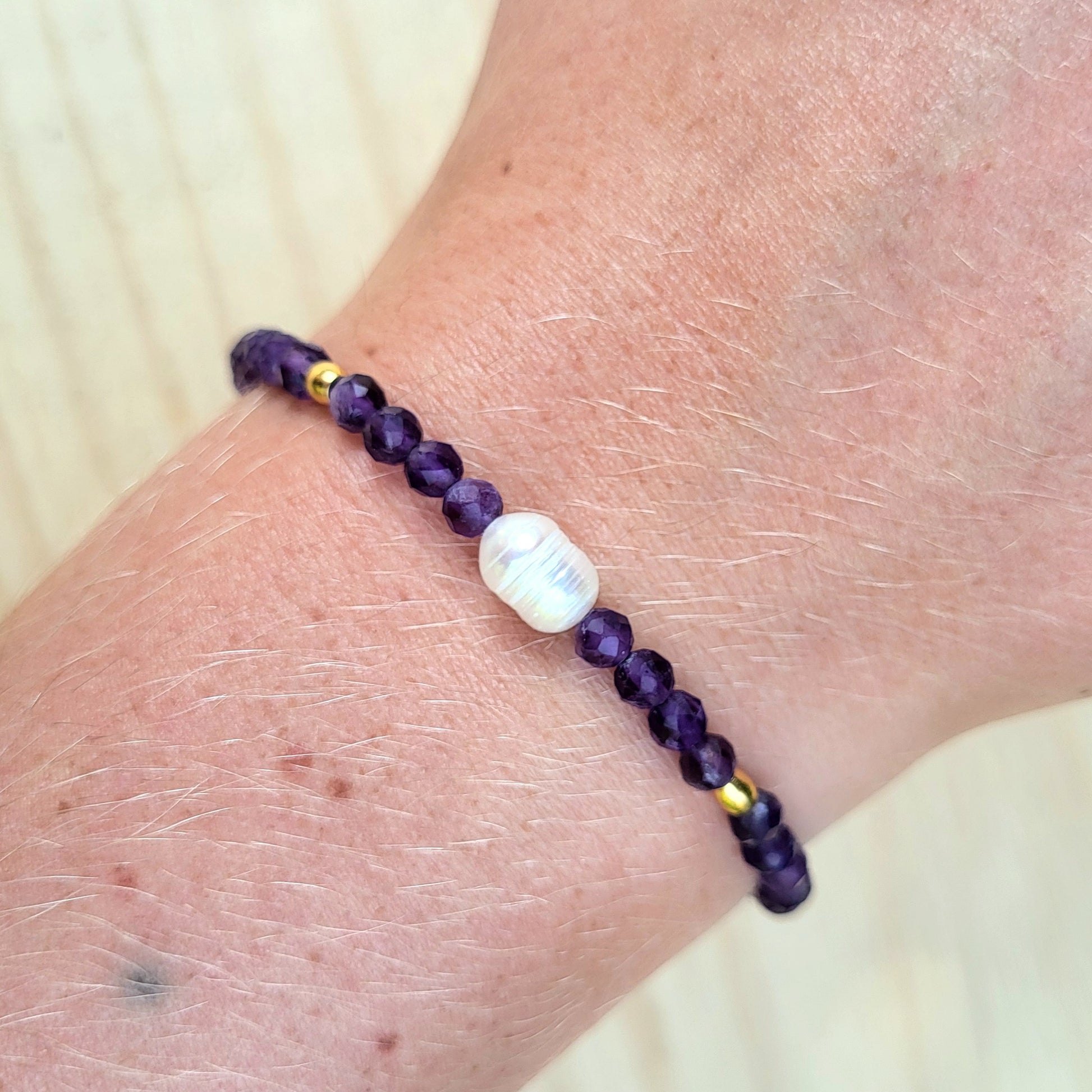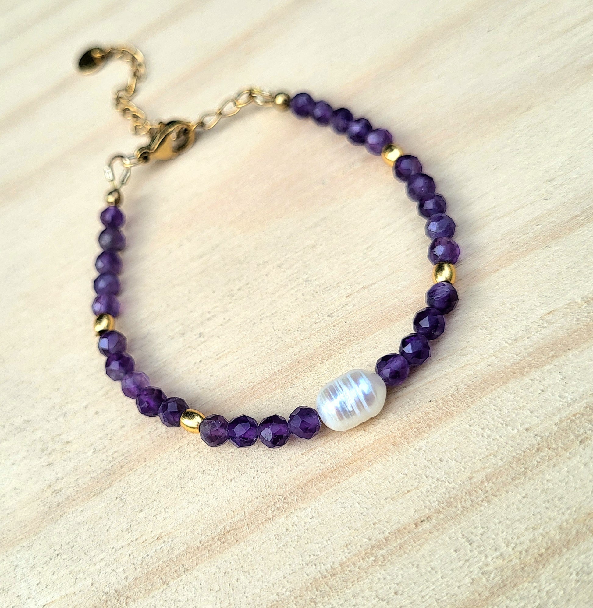 Offrez-vous un moment de douceur et d’harmonie avec ce bracelet en Amethyste naturelle, sublimé par de délicates perles dorées à l’or fin.