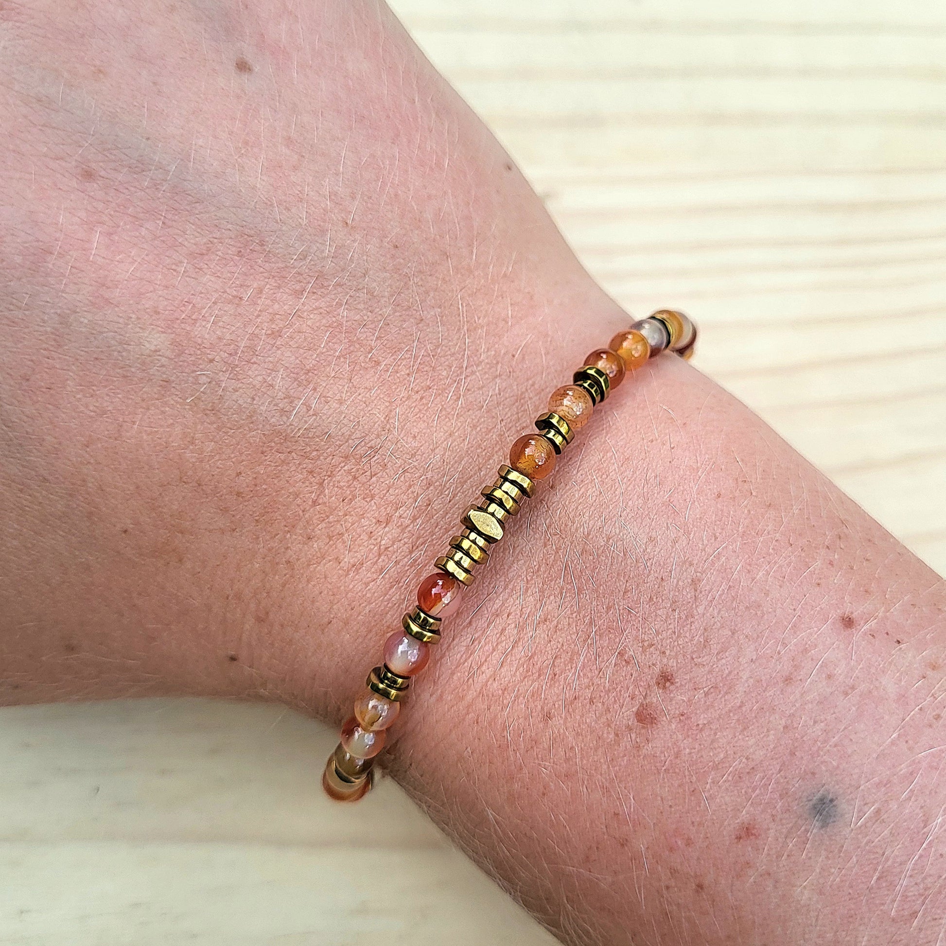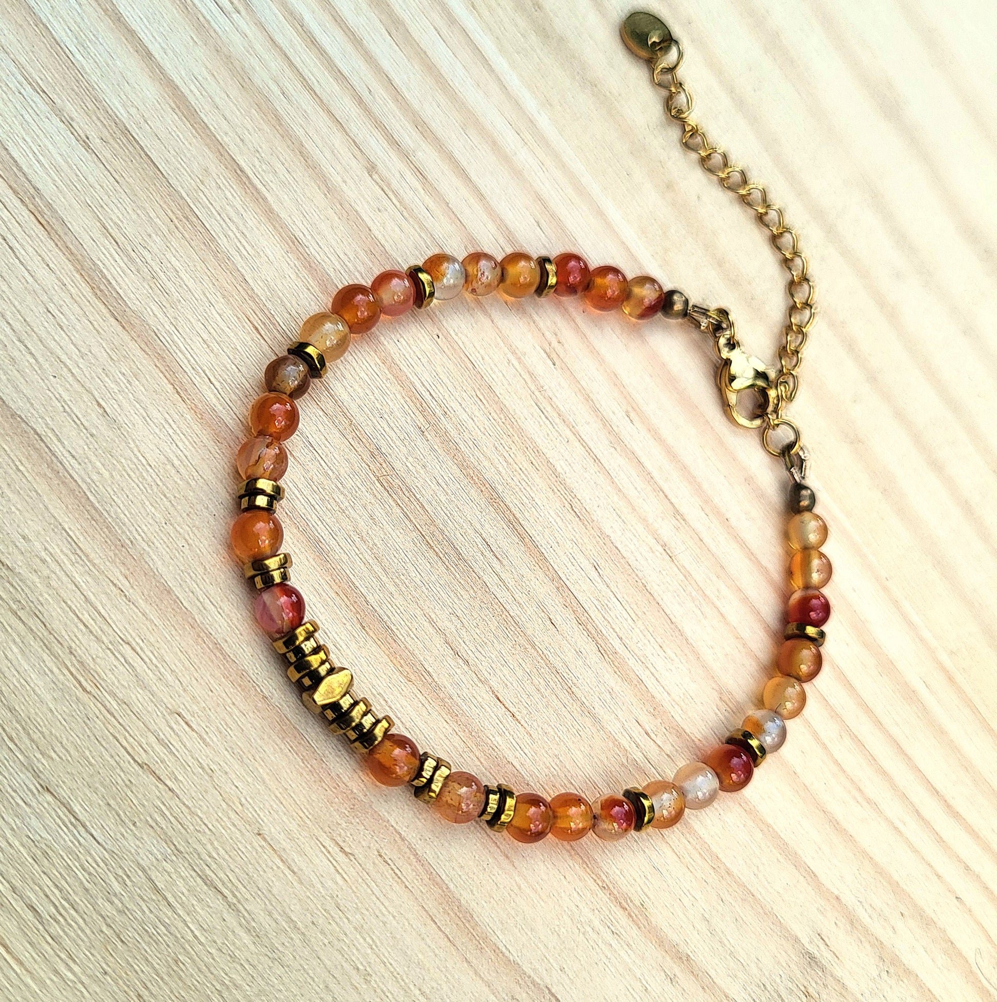 Bracelet pierre naturelle Cornaline – Bijou femme doré à l’or fin – Fermoir acier inoxydable – Cadeau énergétique lithothérapie