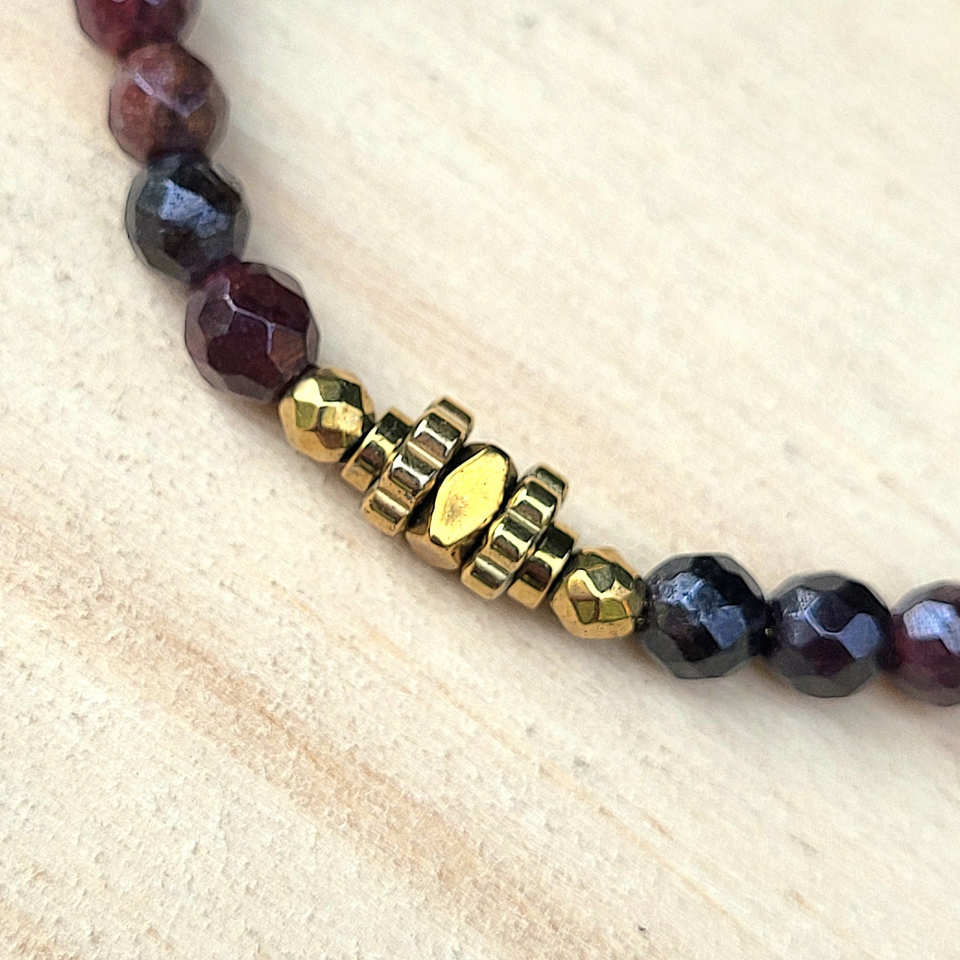 Offrez-vous un moment de douceur et d’harmonie avec ce bracelet en Grenat naturel, sublimé par de délicates perles dorées à l’or fin.